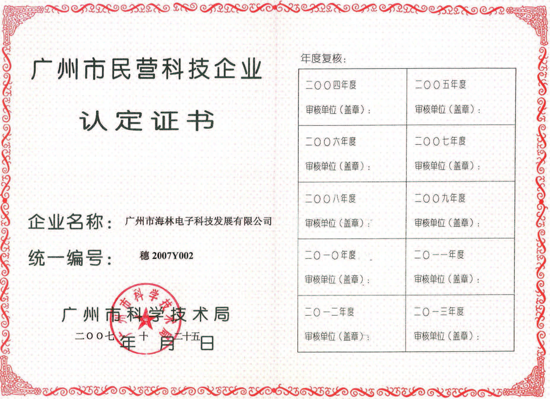 民营科技企业认定证书