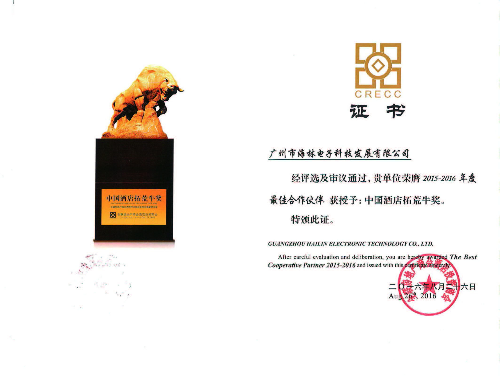 中国酒店拓荒牛奖