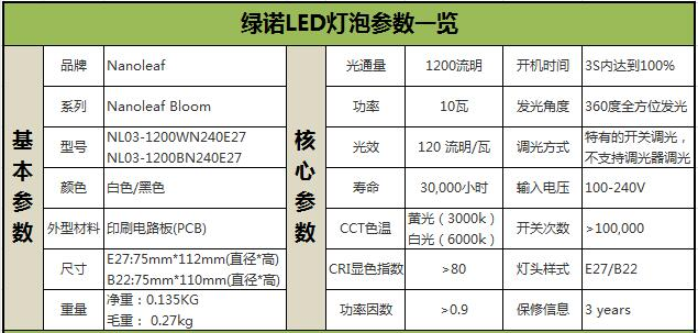 独特的造型 绿诺LED灯泡参数一览