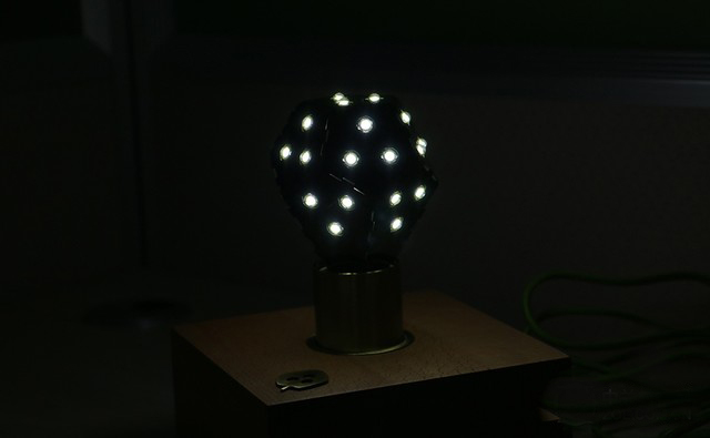 从外型上来看,这款绿诺LED灯泡的设计独特,颠覆了传统灯泡的外观设计,有着较强的视觉冲击力。该产品由11面印刷电路板拼合而成,总共有33枚LED灯珠,可以为家庭及商业用户提供360度的照明体验。
