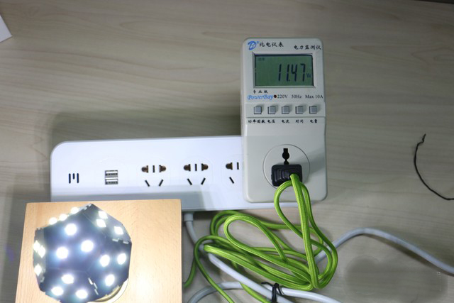 通过实测该LED灯泡及台灯组合套装的瞬时功率,可以得出以下结论:①亮度达到最高时,与商家所标注的10瓦出入不大,功耗不是很高,并且日常生活很少会用到最大亮度;②通过灯泡与台灯组合的对比实测,该灯座需要的能耗在1.N瓦左右,因此在平时不用的时候需要断开电源,以免造成不必要的能耗损失。